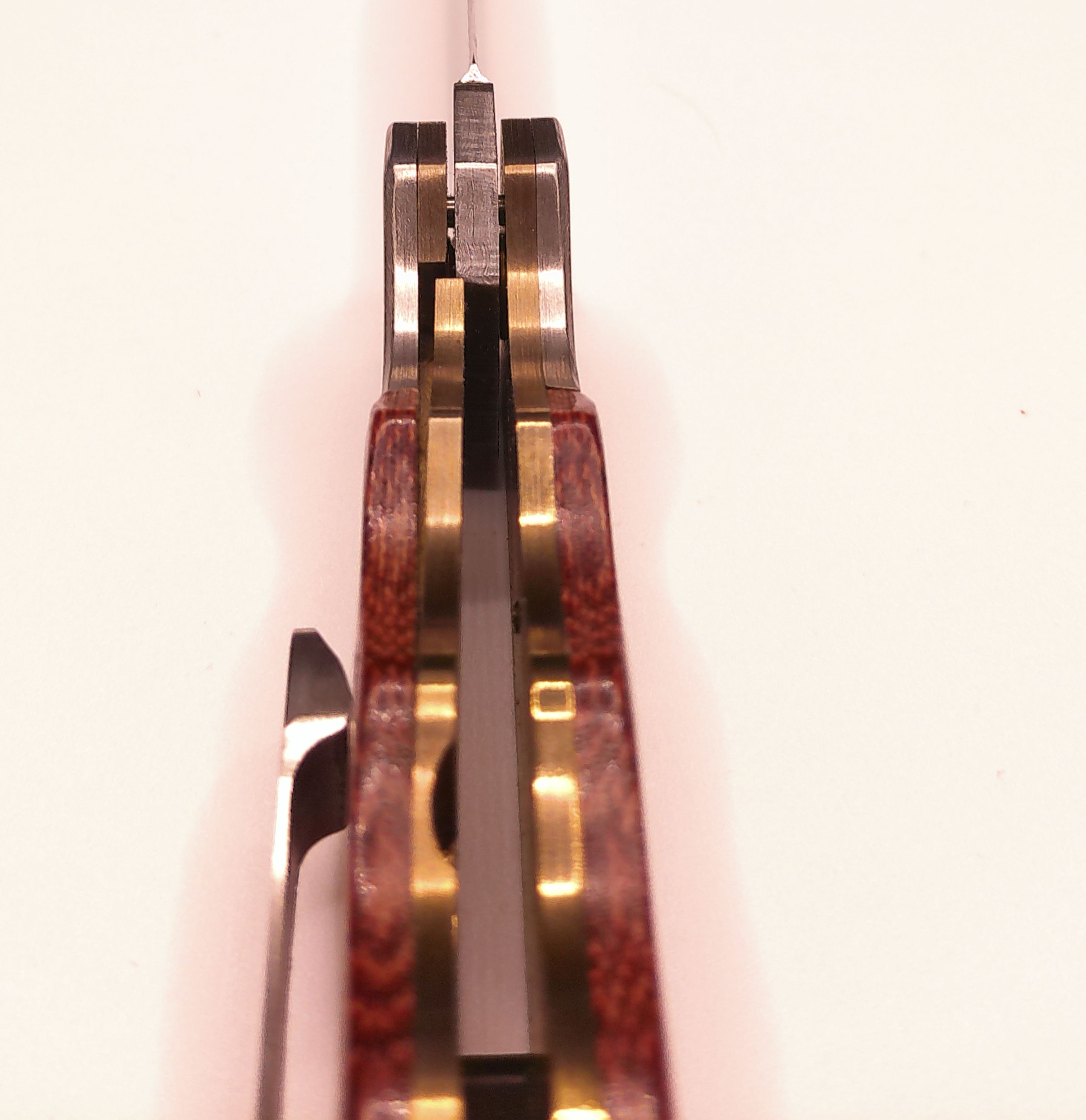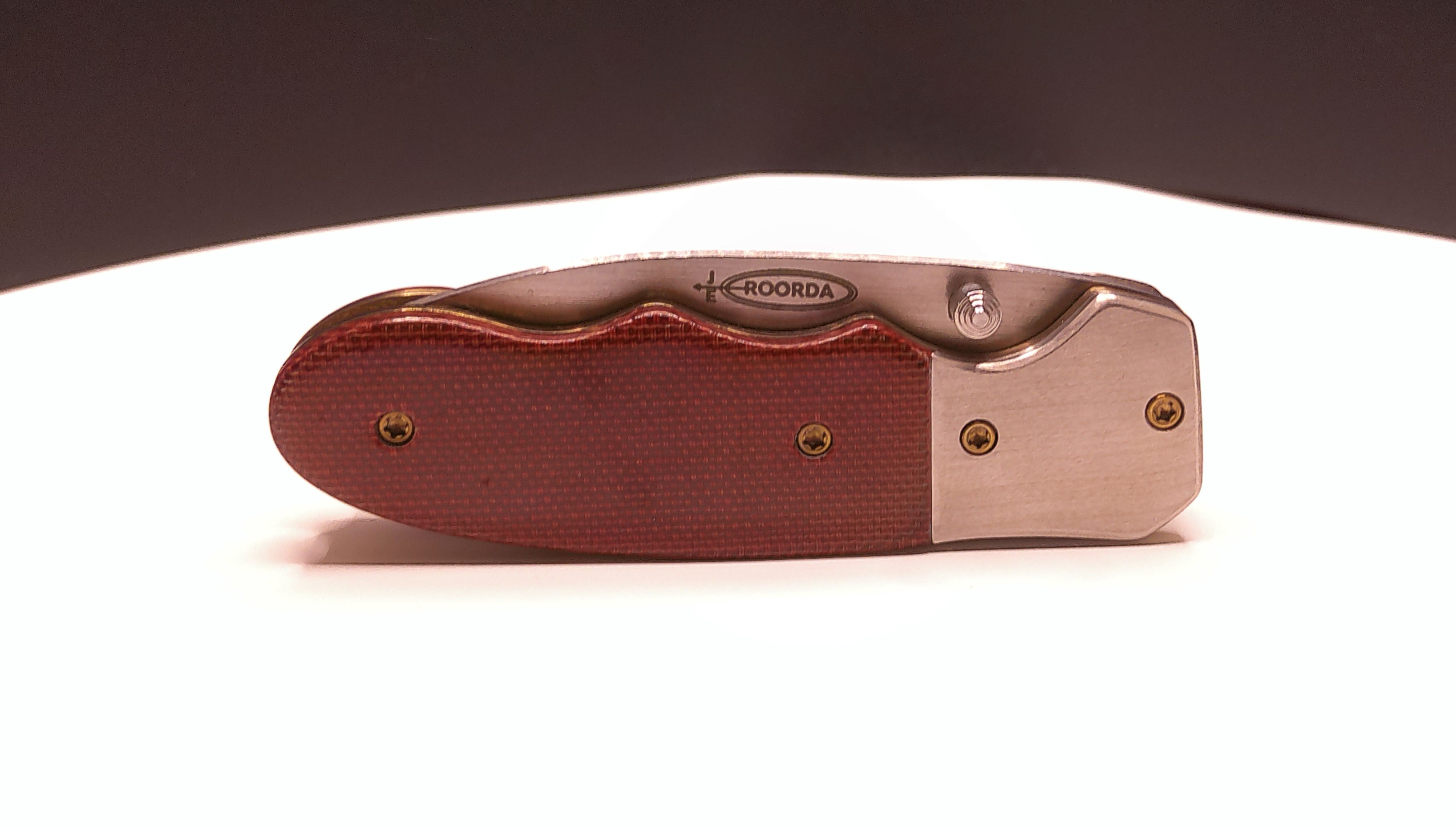 2 3/4" s30v hand rubbed satin finished recurve blade riding on caged bearings with .080 Titanium liner and fasteners. brown canvas micarta scales. comes with padded dry box